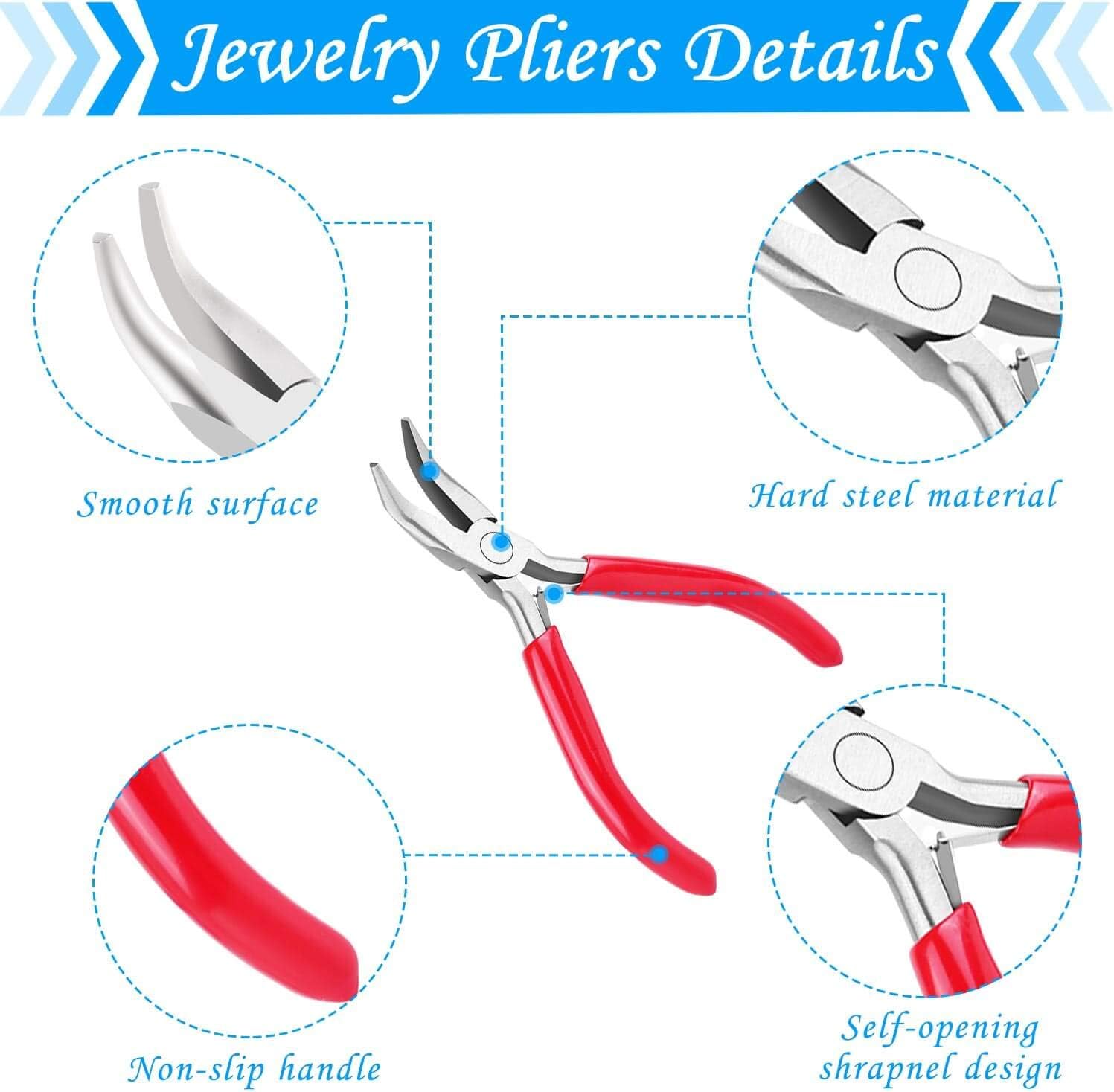 - Features: with bent angle of tips for you can see your work without the handles getting in the way of your line of sight. Great for getting into and gripping in hard to reach places, as well as for opening and closing jump rings and shaping wire