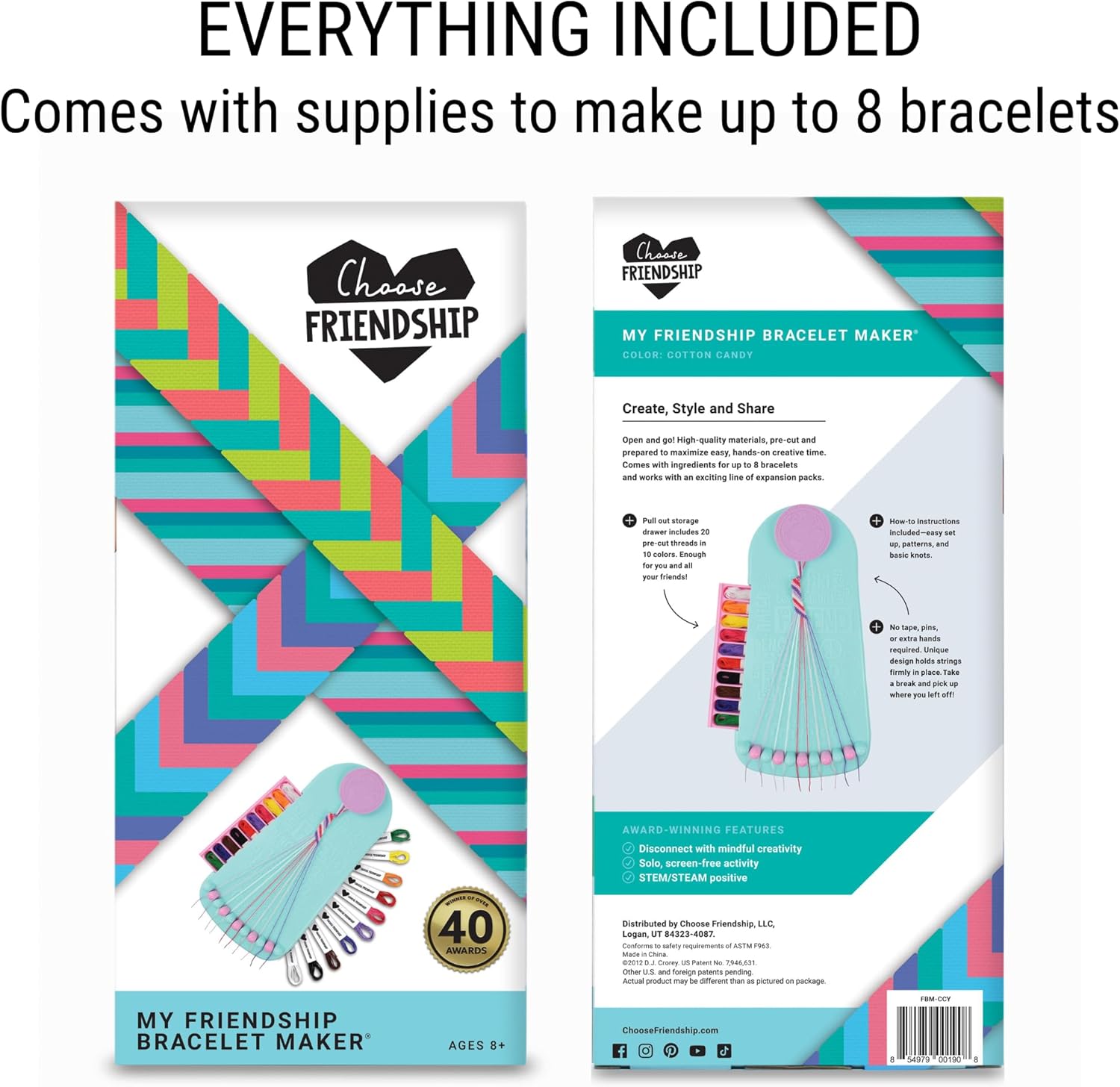 Choose Friendship, My Friendship Bracelet Maker®, an American Original | 20 Pre-Cut Threads – Makes Up to 8 Bracelets | Craft Kit, Kids, Bracelet Making Kit, Jewelry-Making Kit, Gifts for Girls 8-12