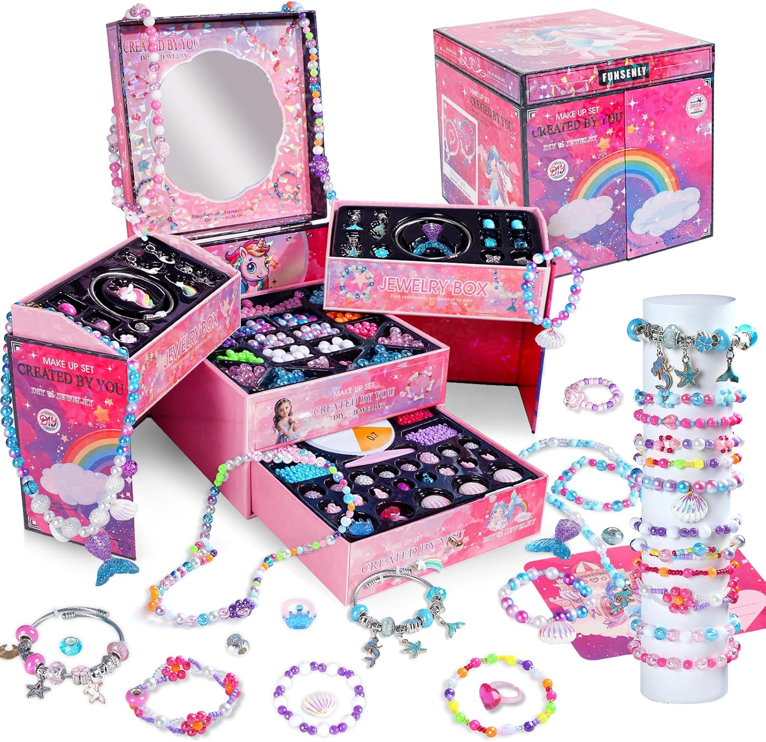 FUNSENLY 2000pcs Charm Beads Bracelet Making Kit for Girls, Jewelry Making Kit for Girls 4-6 8-12, Valentines Day Gift for Kids Girls, Arts and Crafts Girls Toys for Kids Age 4-8 8-12