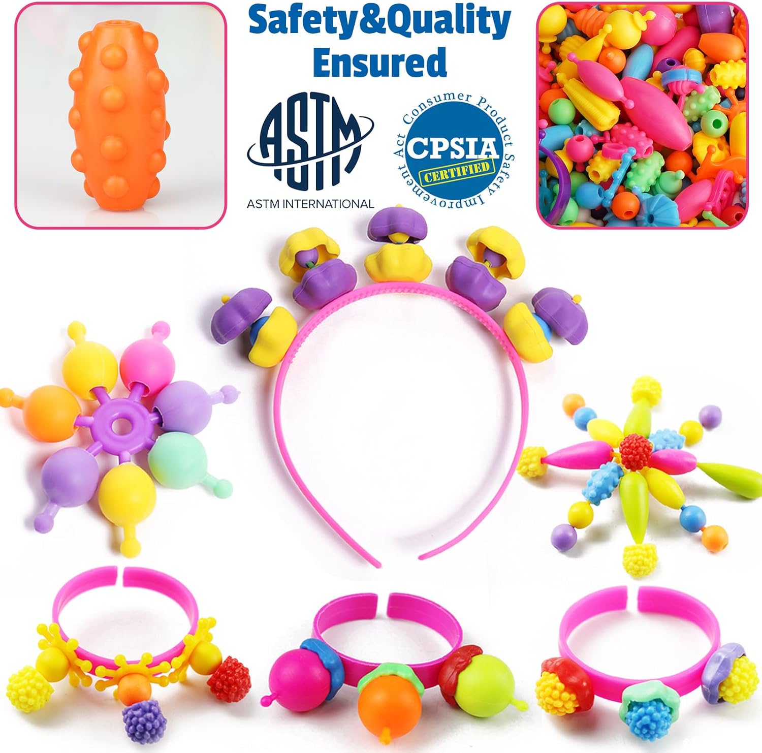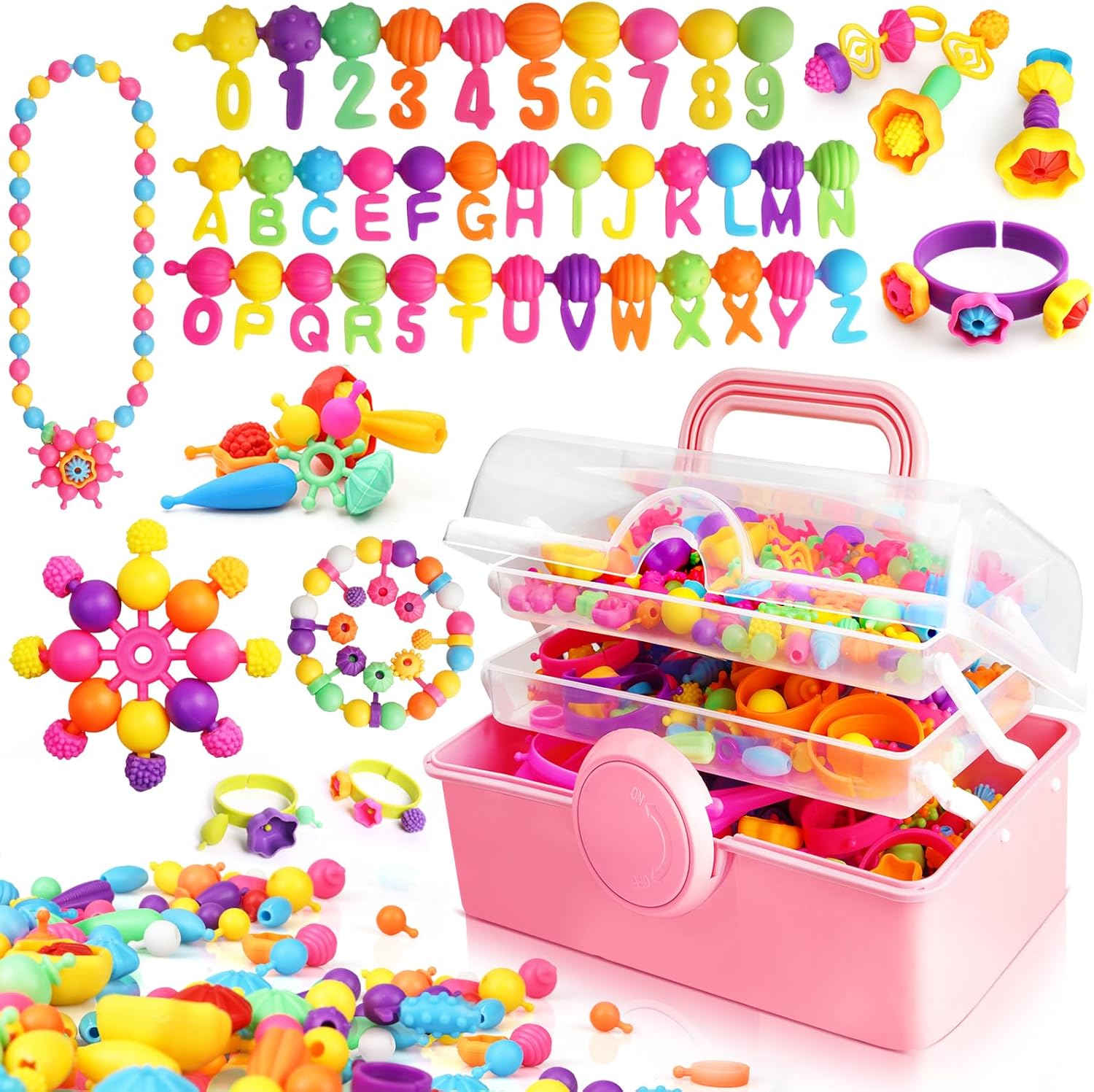 FUNZBO 650pcs Pop Beads – Jewelry Making Kit for 3 4 5 6 7 8 Year Old Little Girls, Arts and Crafts Toys for Kids, Necklace Bracelet Creativity Snap Set Birthday Gifts, Valentines Day Gifts for Kids