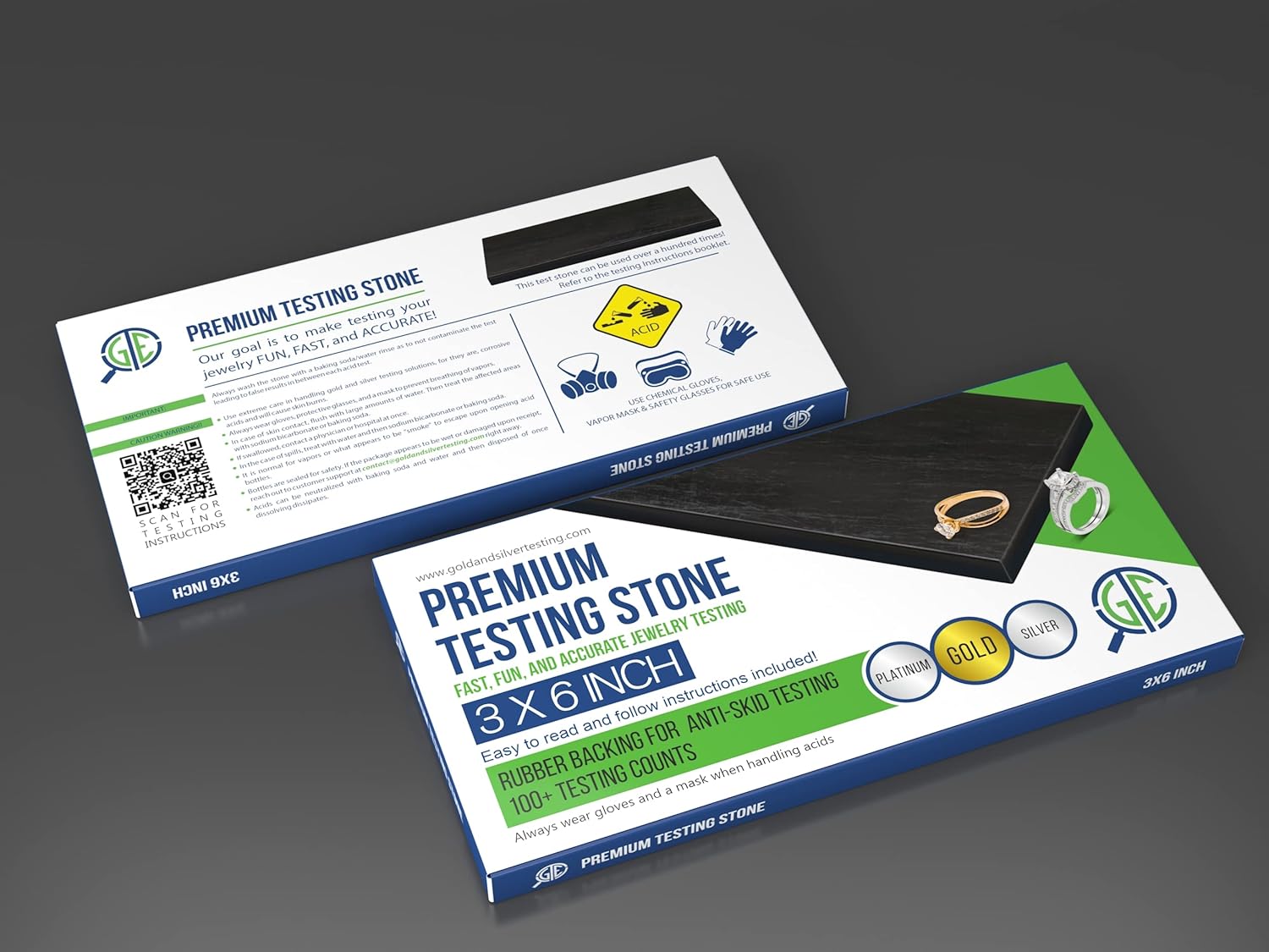 - GTE 3''x6'' Test Stone with rubber backing for secure non-slip desktop testing (Reusable up to 1000 tests!)