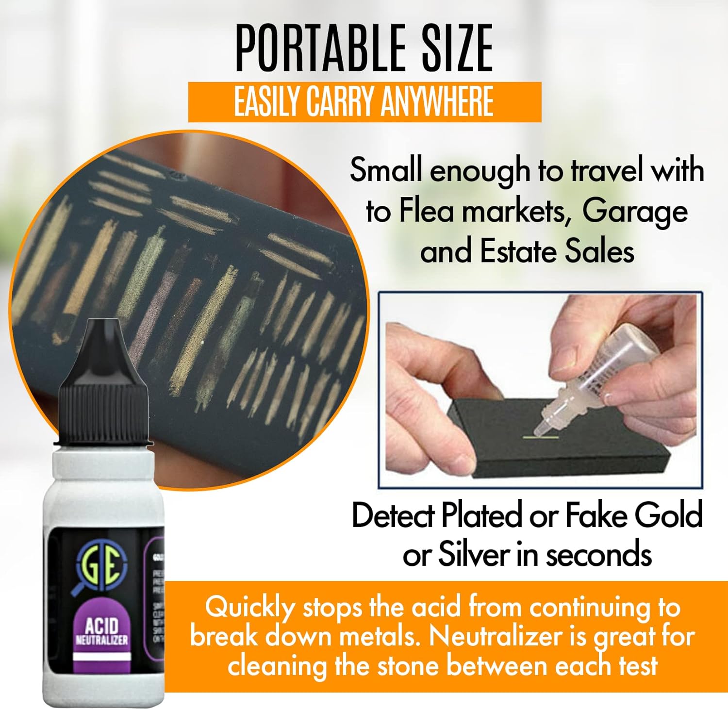 Experience the simplicity of our testing process – just scratch your jewelry against the test stone, apply a drop of acid to the scratch mark, and witness the results unfold before your eyes.