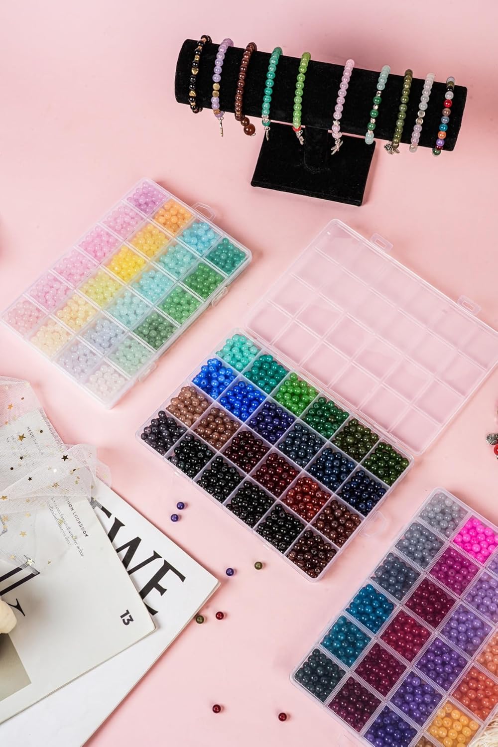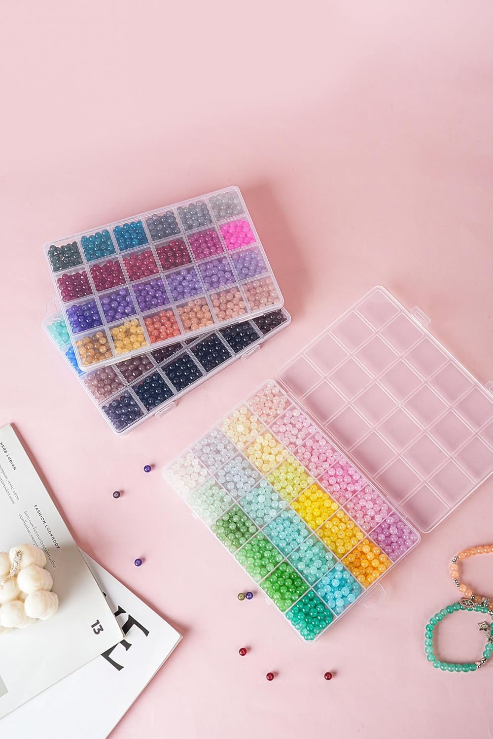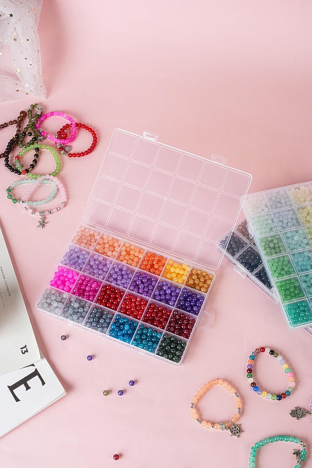 This round glass beads kit provides you with a vast selection to unleash your creativity, you'll have endless possibilities to create unique and personalized jewelry.