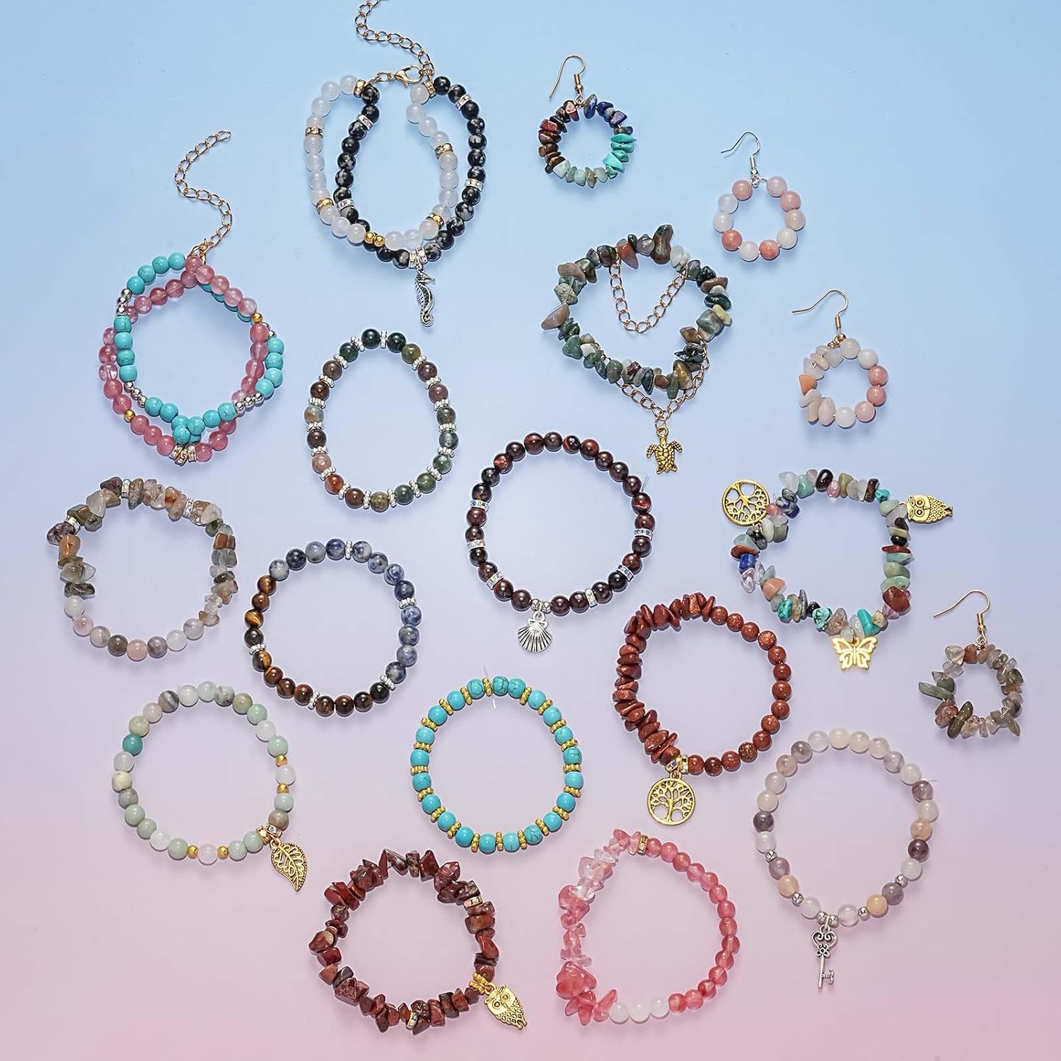 - 6mm Natural Stone Round Beads: 12 Colors × 30 PCS = 360 PCS