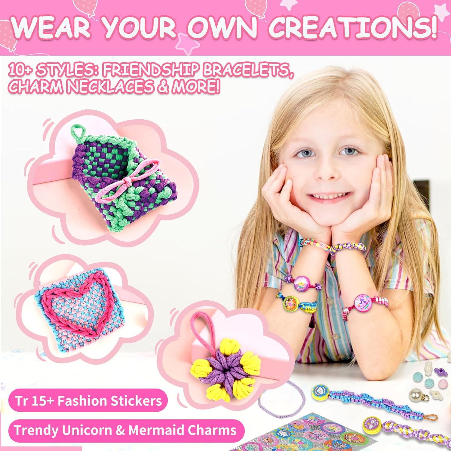 ZQIN Friendship Bracelet Making Kit for Girls 8+:Quick Maker DIY Arts and Crafts Toys, Best Christmas & Birthday Gifts for 6-12 Year Old Girls (Pink)